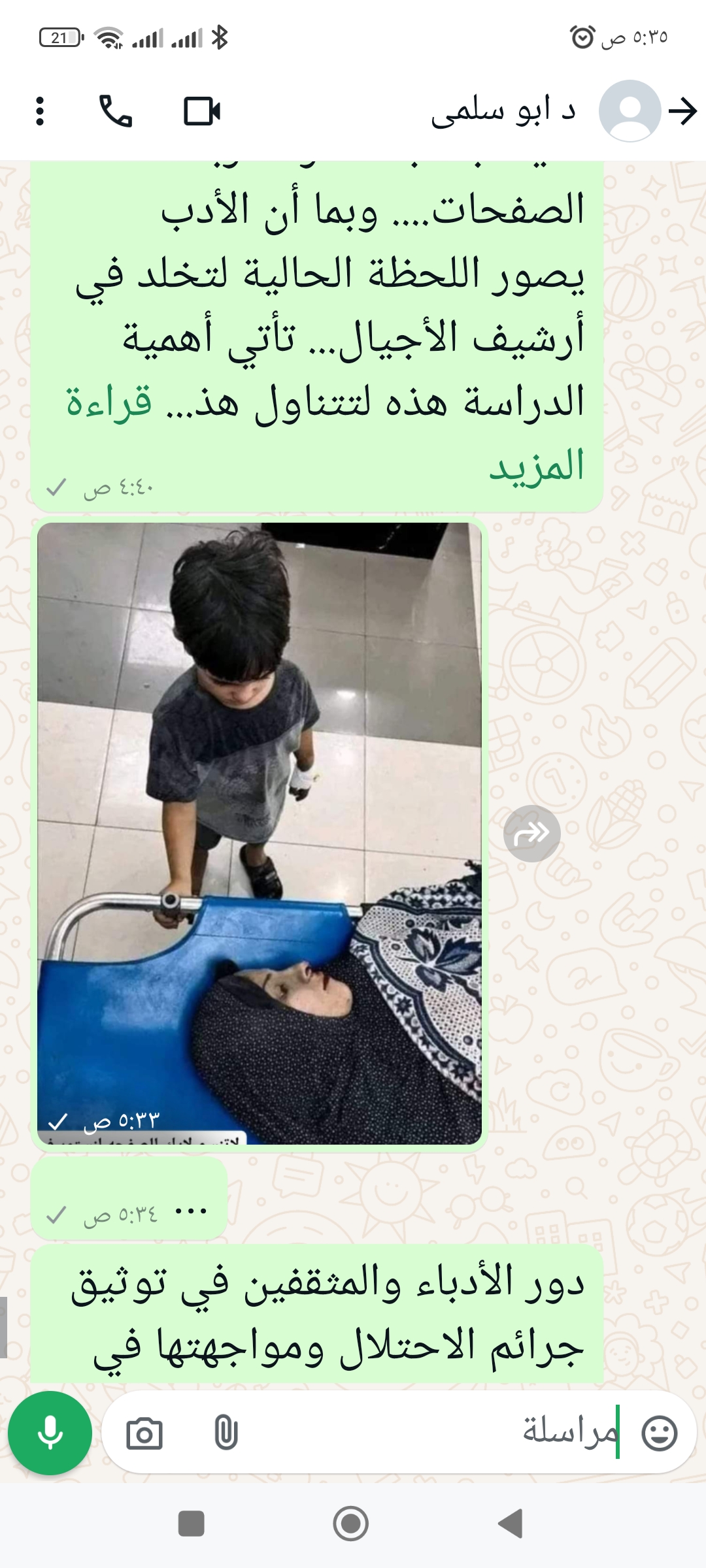 قالت لجرحها اتركني لأعود  إلى ابني دقيقة