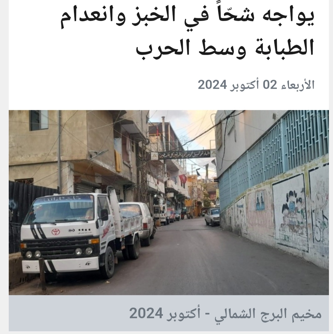من المشكلات الأساسية التي يعاني منها اهلنا في مخيم برج الشمالي مع الاونروا، ما يتعلق بالقطاع الصحي، لاسيما عدم توفير الأدوية للمصابين بأمراض مزمنة، الى جانب مشكلة الاغاثة والمساعدات والاعاشات، حيث ان ادارة الاونروا و منذ اكثر من شهرين لا تسمع ولا تهتم وعنوانها ادارة الظهر لكل ما يجري في مخيمات صور من جوع وموت وخوف من المصير المجهول. هذا وقد صرّح الحاج محمد ابو رشيد امين سر اللجنة الشعبية في مخيم برج الشمالي انه لا يجوز للاونروا والجمعيات والمؤسسات الدولية ان يتركوا اكثر من عشرين الف لاجئ في المخيم واكثر من خمسين الف في مخيمات وتجمعات صور بدون دواء واغاثة ومساعدات مالية واعاشات ، كما على المديرة العامة وادارة منطقة صور تحمل مسؤولياتهم و العمل من اجل فتح العيادات وتامين مساعدات للاهالي داخل المخيمات والتجمعات في منطقة صور وان ادارة الظهر وعدم تحمل المسؤولية غير مقبول وان اغلاق العيادة داخل المخيم غير مبرر وخاصة في هذه الظروف الصعبة التى يمر بها لبنان وجنوبه الصامد كما اننا سنعمل مع كل اللجان في المخيمات ومن خلال لجنة المتابعة المركزية الى تصعيد المطالبة خاصةً بعد اللقاء الاخير والوعود من قبل مديرة الاونروا في لبنان.