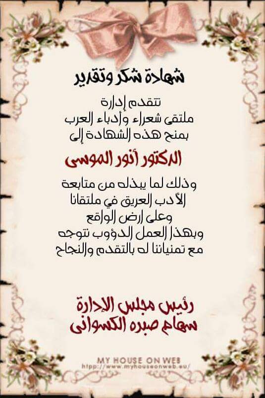 أتقدم بالشكر لملتقى شعراء وأدباء العرب ورئيسته السيدة ألأديبة سهام صبره، على الثقة والتقدير الذي أهديه لكل معتقل مناضل في السجون الإسرائيلية…
