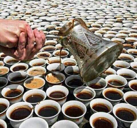 ليست القهوة في العُرف العربي ليست ارتواء بل كيْف وفنوذوق في التجهيز والصّب والتناول ، كما أنها ليست للسّلم فقط بل تستخدم للحروب. فكافّة القبائل في السابق، إذا حدث بينها شجارٌ أو معارك طاحنةٌ وأعجز إحدى القبائل بطل معين، كان شيخ العشيرة يجتمع بأفرادها ويقول: “مَن يشرب فنجان فلان ويشير بذلك للبطل الآنف الذكر؟” (أي: َمن يتكفّل به أثناء المعركة، ويقتله؟) فيقول أشجع أفراد القبيلة: “أنا أشرب فنجانه”. وبذلك يقطع على نفسه عههداَ أمام الجميع بأن يقتل ذلك البطل أو يُقتَل هو في المعركة. وأيّ عارٍ يجلبه هذا الرّجل على قبيلته إذا لم يُنفّذ وعده! هكذا تحوّلت القهوة من رمزٍ للألفة والسّلام إلى نذير حربٍ ودمارٍ.