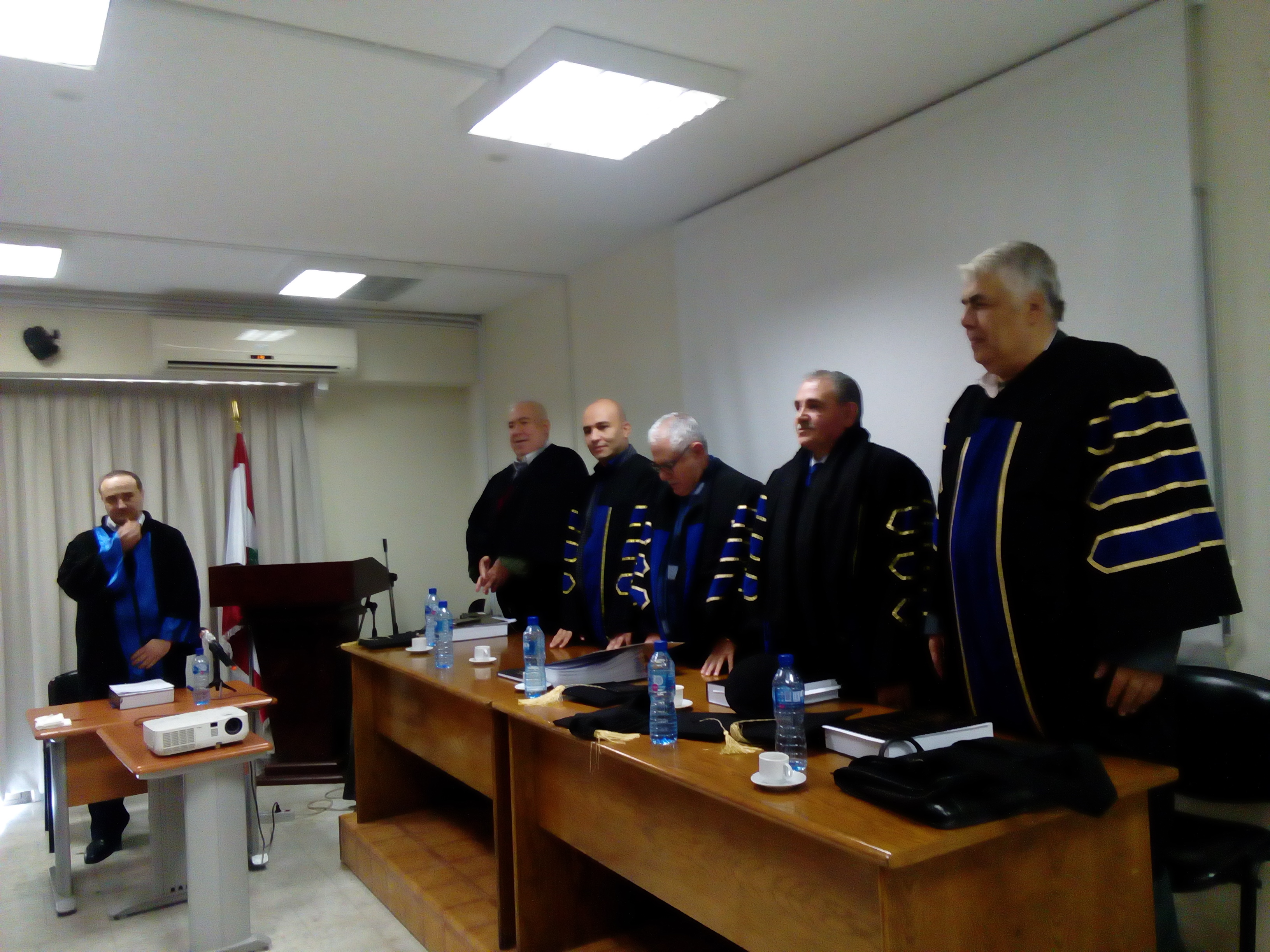 وتألفت اللجنة من الأساتذة الدكاترة: أ. د. محمد أسعد النادري رئيسا، وأ. د. عاطف عواد مشرفا، وأ. د. محمد أبو علي وأ. د. إبراهيم فضل الله قارئين، وأ. د. أنور الموسى مناقشا.